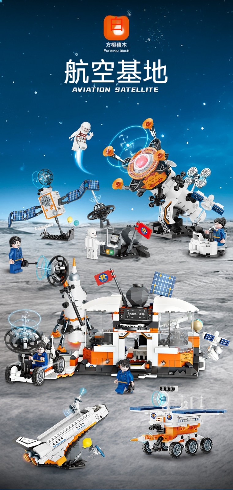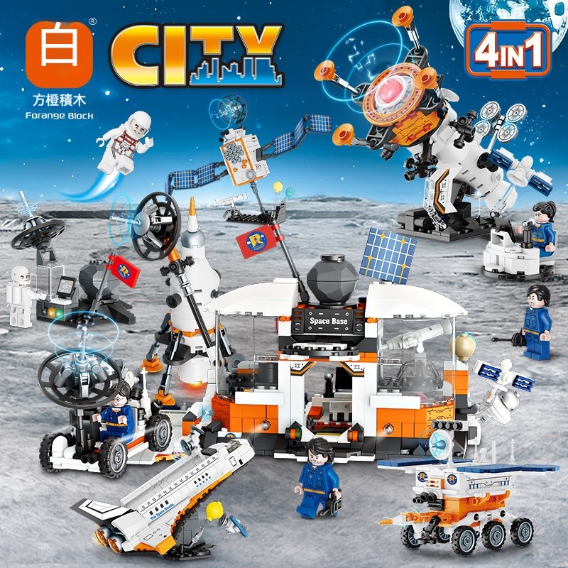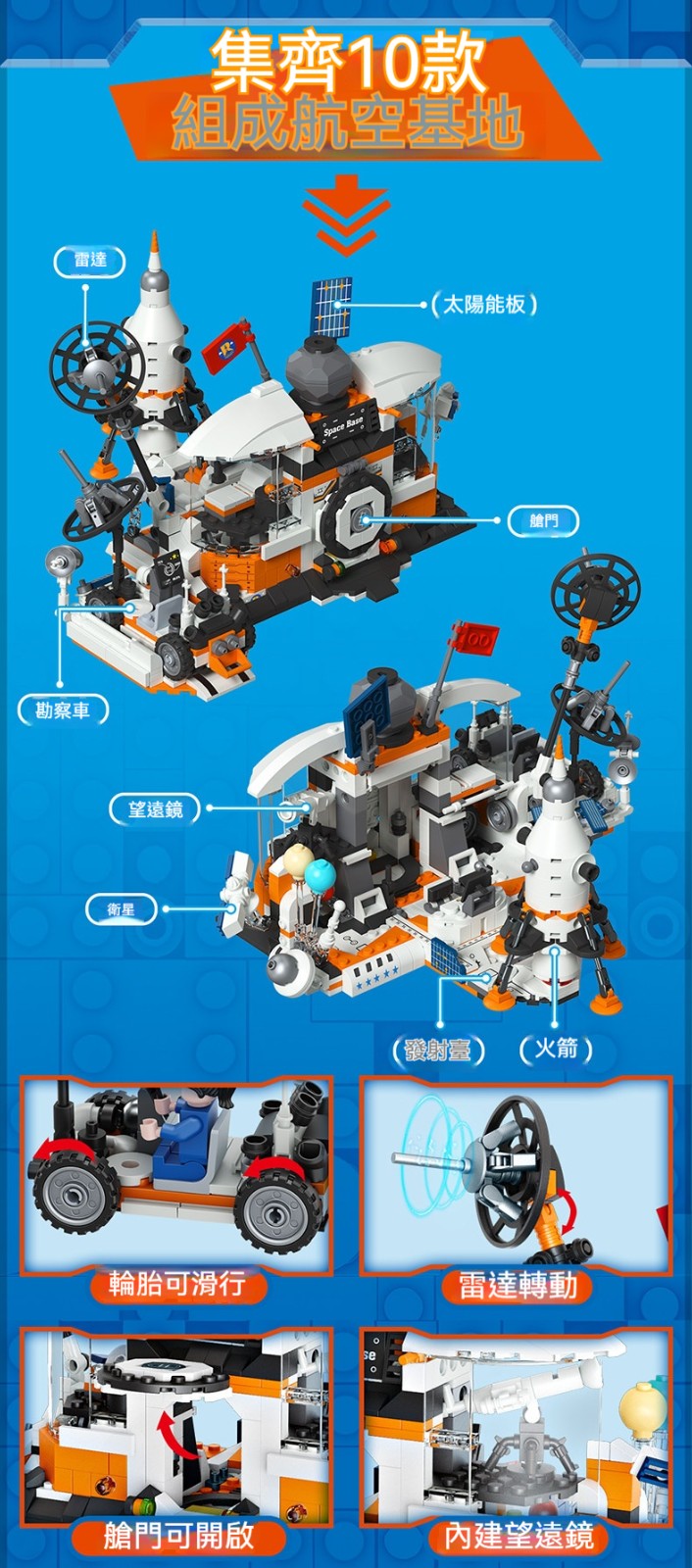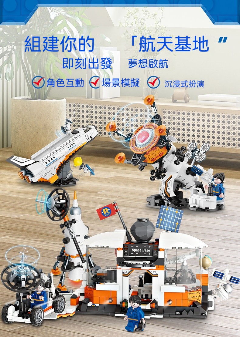 ✨10合1航太火箭積木套裝|✨航天飛機+太空人仔+可轉動輪子+仿真操控台|兒童益智拼裝太空探索玩具✨