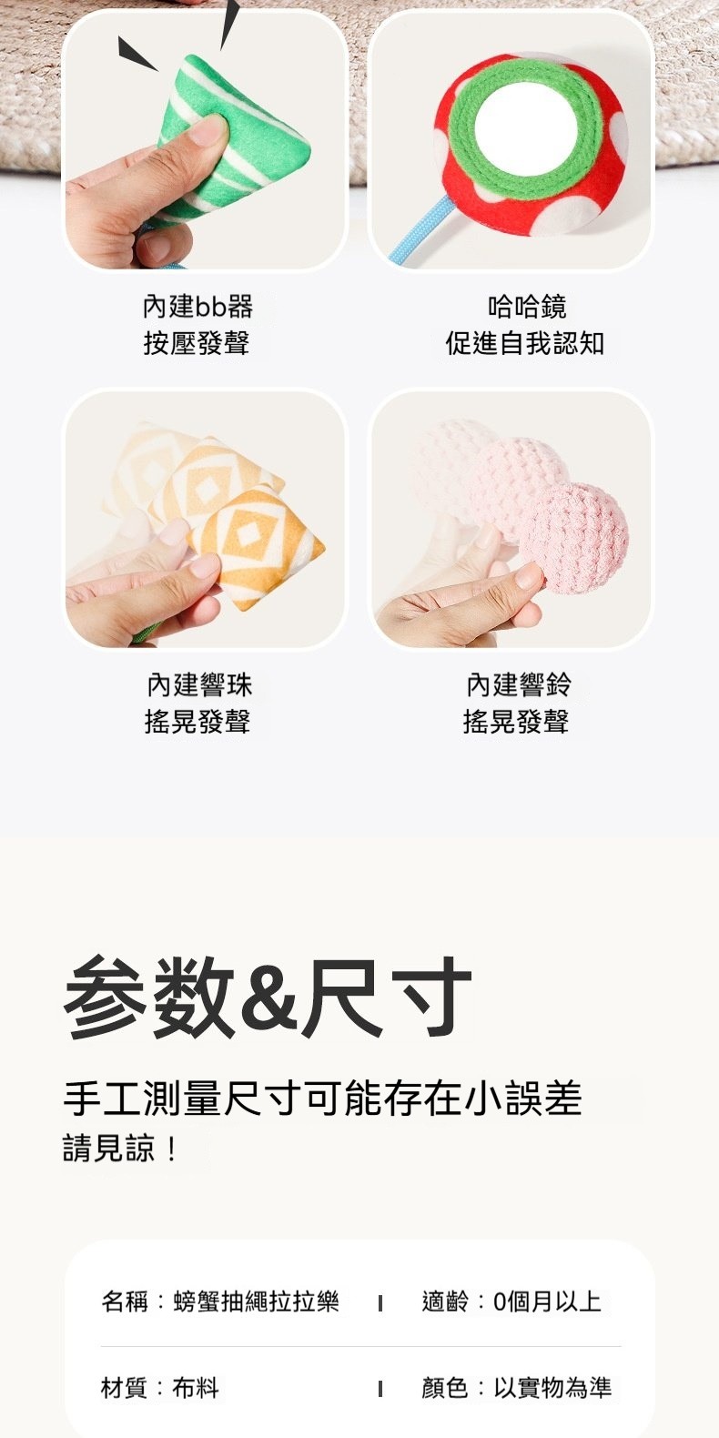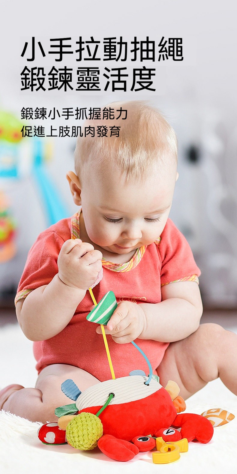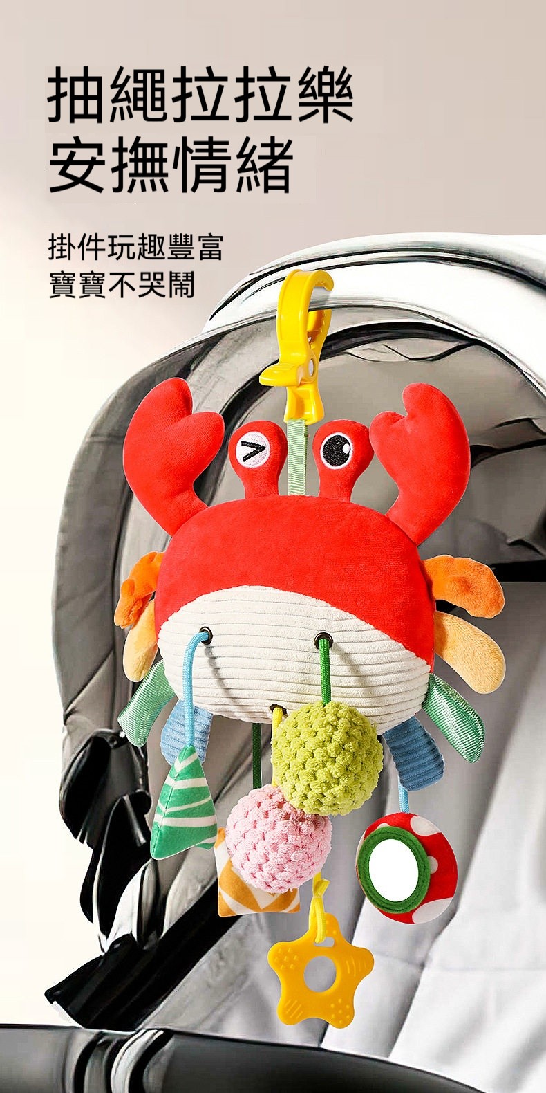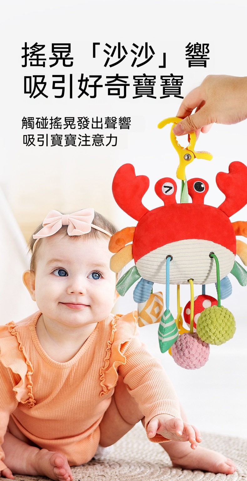 ✨寶寶不安哭鬧✨螃蟹拉拉樂安撫玩具,一拉就開心!✨